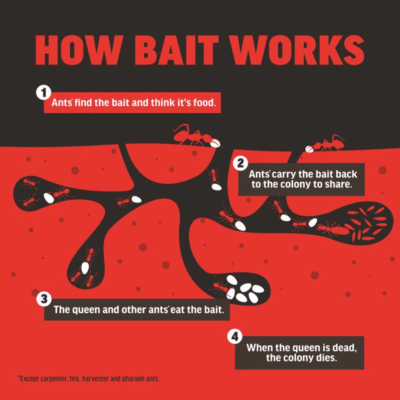 Amdro Ant Block Home Perimeter Ant Bait kills ants outside so they can't come inside. Ants think this specially formulated bait is food, so they carry it back to the colony to share. Once the queen and other ants eat it, the whole mound dies. Use it on lawns, landscaped areas, or around structures to rid your home of ants. Kills 15 different ant species.