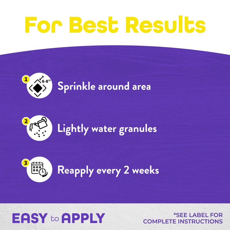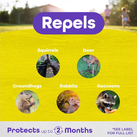 Bonide Repels-All Animal Repellent Granules provide a convenient granular form of our popular Repels All liquid to trigger genetically and biologically ingrained fear and flight responses in a multitude of animal intruders without harm. It is safe to use around pets and covers up to 2500 square feet for two months. The active ingredients are cloves, garlic oil, and putrescent whole egg solids.