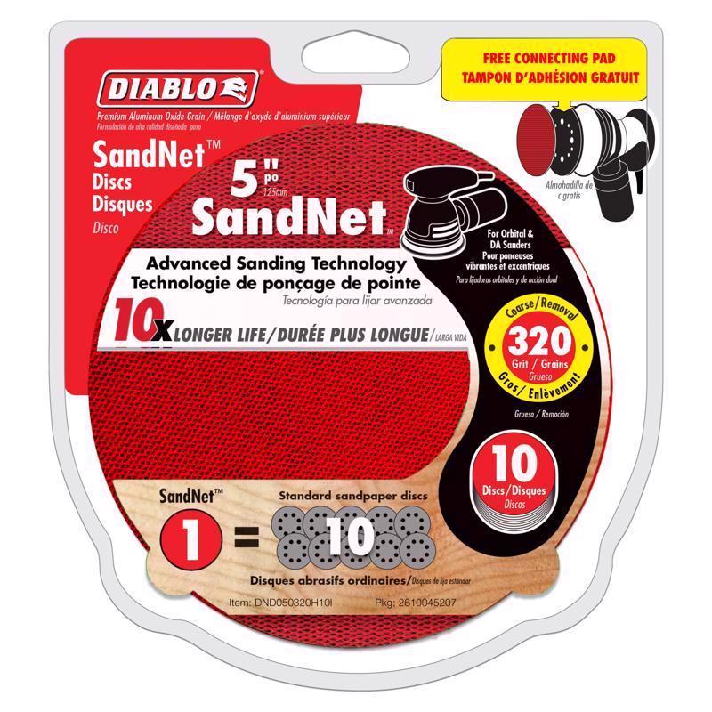 Diablo's new SandNet discs with reusable sanding technology are the most advanced sanding discs on the market with 10x longer life versus standard sanding discs. Each SandNet disc features a clog-reducing net design coated in premium aluminum oxide grit for fast material removal while reducing material build-up.
