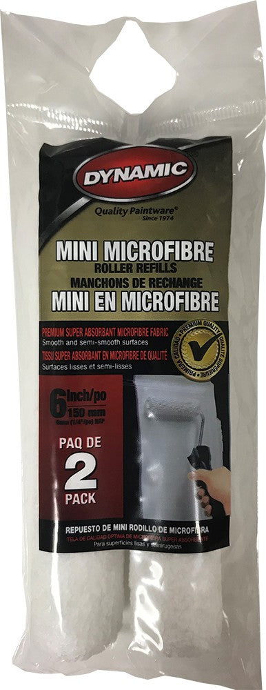 Dynamic Mini Micro Fiber Roller Covers 6" X 1/4" 2-Pack HM005703