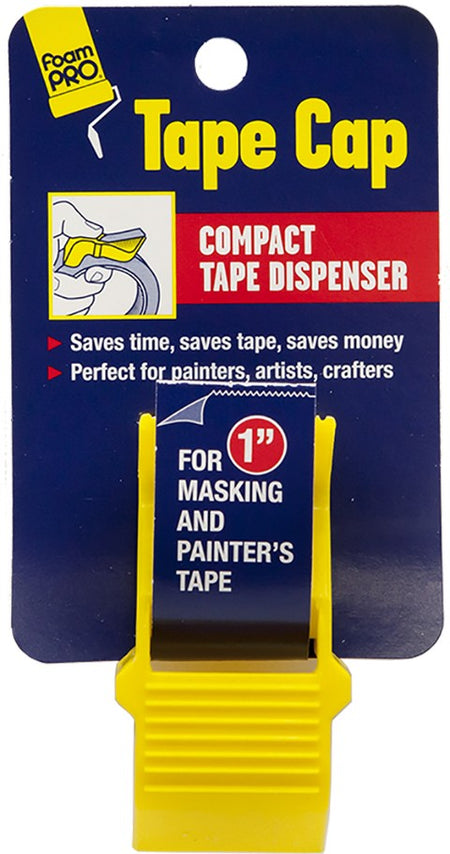 The FoamPRO® Tape Cap Compact Masking Tape Dispenser saves you time, tape and money! No more searching for the end of the tape. Quickly cuts and releases tape. Makes straight cuts for masking corners. It is perfect for painters, artists and crafters.