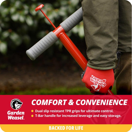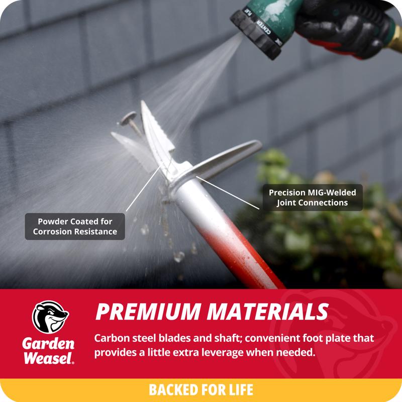 The Garden Weasel Weed Popper Step & Twist helps you get rid of dandelions and other weeds quickly and root-free. Its 38-inch steel handle and 4-inch precision-tipped steel blade make it easy to target weeds with accuracy. The Weed Popper Step & Twist reduces weeding time while protecting your lawn, thanks to its serrated edges and comfort grip.