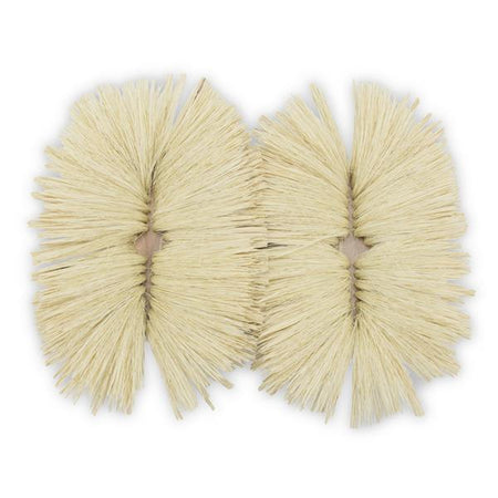 The Marshalltown Double Crows Foot Texture Brush is made of white Tampico fibers set in a clear lacquered hardwood block. Has a threaded hole for use with any standard broom handle.