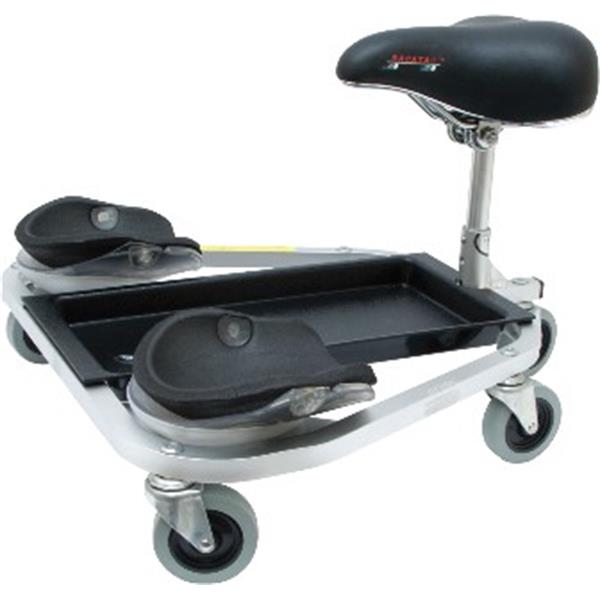 The Marshalltown Racatac features an adjustable seat that supports upper body weight and leaves feet free to control movement. Knee pads allow knees to rest freely. Work in shorts without bulky kneepads. 3" (51mm) casters allow you to roll instead of bouncing around your work on your knees. Keeps you elevated off your work and above wet, dirty, or dusty floors. Work on 1 or 2 knees.