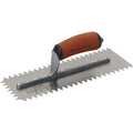 This trowel is available in two sizes for your drywall needs: 12” x 4 ½” or 16” x 4 ½”. Both size options come with a soft grip DuraSoft® handle that increases comfort and reduces fatigue. Made in the USA with Global Materials.