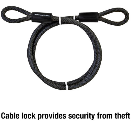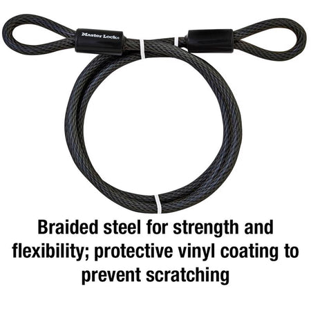This Master Lock Looped End Cable utilizes 10mm braided steel for increased tensile strength and durability, while its protective vinyl coating shields against abrasions. The retractable design ensures convenient storage, and it is suitable for use alongside select laminated, solid steel, and mini-U-locks to secure oversized objects. With a manufacturer's Limited Lifetime Warranty in its corner, it is a reliable security solution you can depend on.