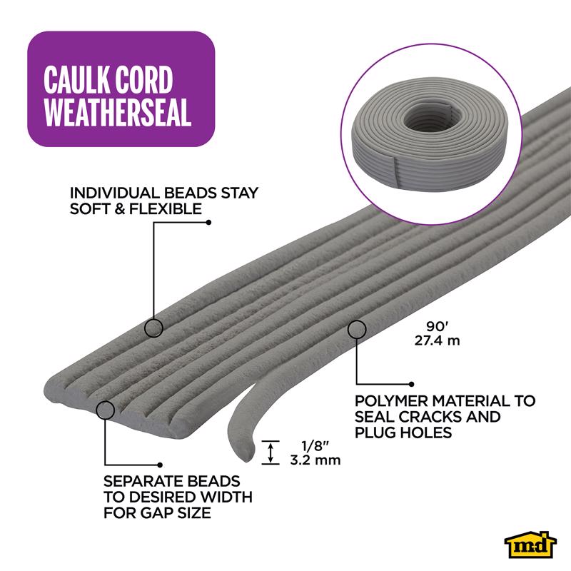 MD Building Products 71548 Flexible Caulking Cord Gray 90 Ft