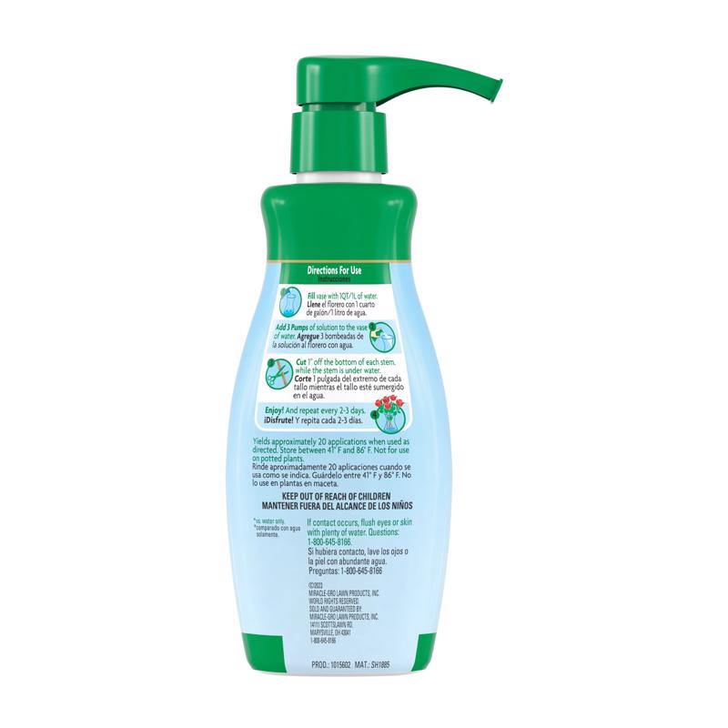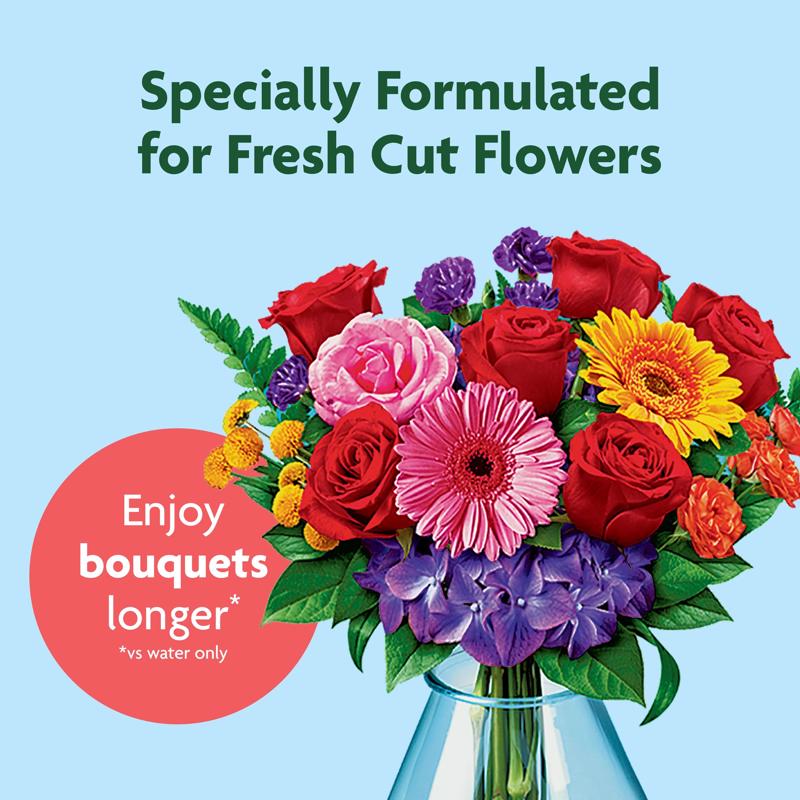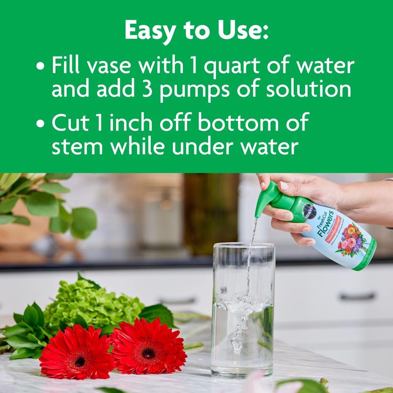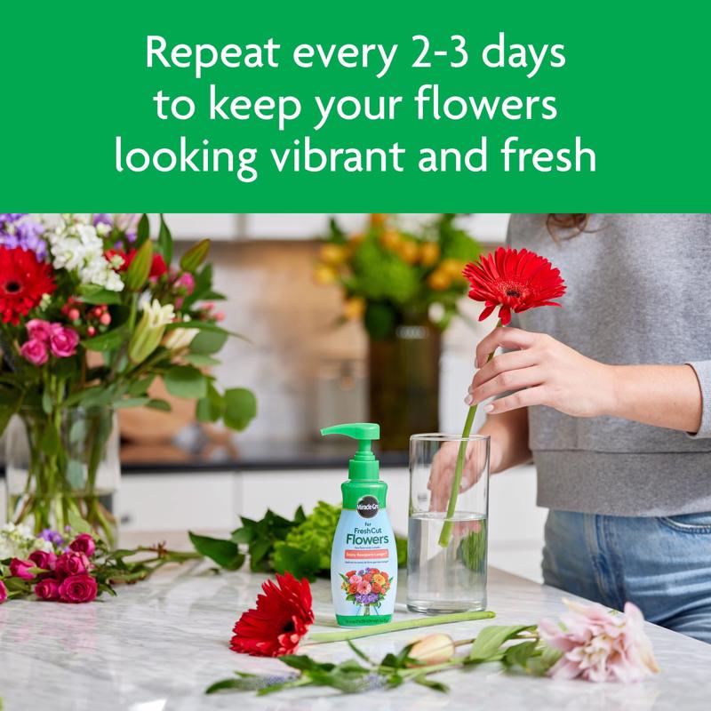 Miracle-Gro for Fresh Cut Flowers lets you enjoy fresh cut flowers longer vs. water only. Apply directly to your water vase for longer lasting bouquets. Replace water and add new solution every 2-3 days to keep your flowers looking fresh. Not for use on potted plants.