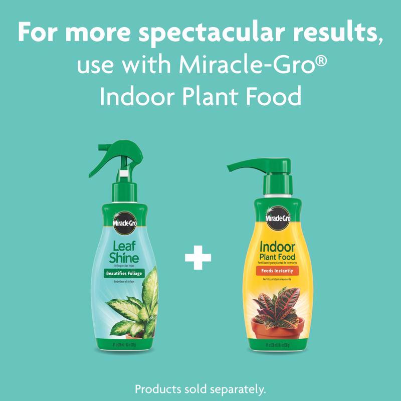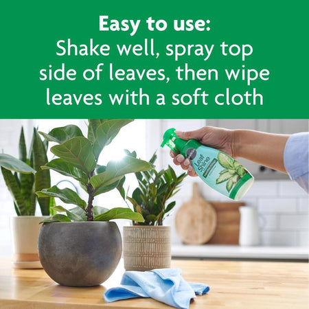 Miracle-Gro Leaf Shine cleans and beautifies all hard-leafed foilage plants. Won't clog leaf pores and is odor-free. Easy to use for misting plants. Apply whenever plant leaves appear spotty or dull. Water-based. Contains mineral oil.