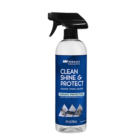Miracle Sealants Clean, Shine & Protect is a pH-balanced spray designed for natural and engineered stone surfaces, including granite, marble, quartz, quartzite, and tile. This professional-grade formula cleans, polishes, and protects with every use, thanks to its Ceramic Protection technology that bonds to surfaces to repel spills and simplify maintenance.