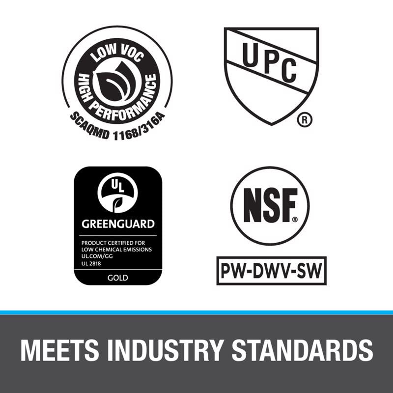 For Residential and Commercial hot and cold water systems up to 200 degrees farenheit. Approved for Corzan CPVC Piping Systems. Meets ASTM F493 and ASTM D2846.