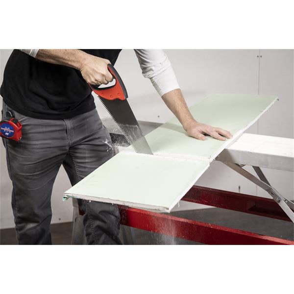 The QLT by Marshalltown 15" Soft Grip Handle Drywall Saw cuts quickly thru wallboard, gypsum, lath and thin coat backing board. Features a hardened and tempered blade with five teeth per inch.