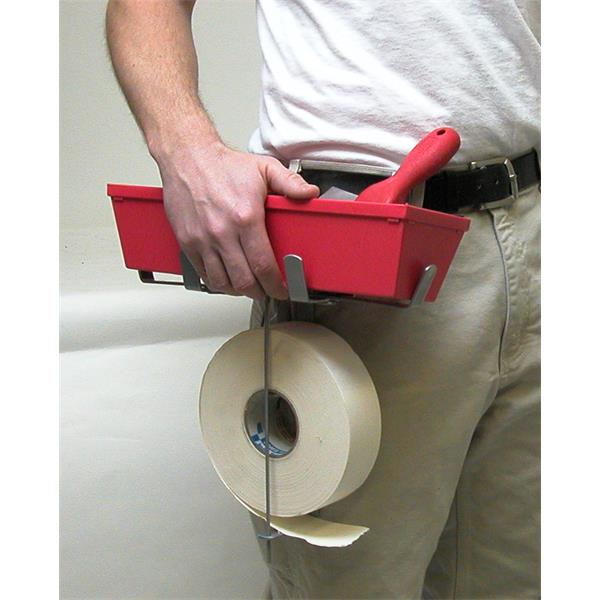The QLT by Marshalltown Mud Pan and Tape Holder hooks to the user's belt to hold the mud pan where it can be easily accessed. When assembled, the unit will hold a 12" mud pan and up to 500 ft roll of drywall tape. Some assembly is required.