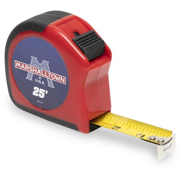 The MARSHALLTOWN Tape Measure is an essential tool for all Masonry jobs, featuring a soft grip, wide belt clip, and self-retracting mechanism. Our selection includes a 25' Standard, 16' Brick Spacing, or 16' Modular Spacing Tape Measure to meet your specific needs.
