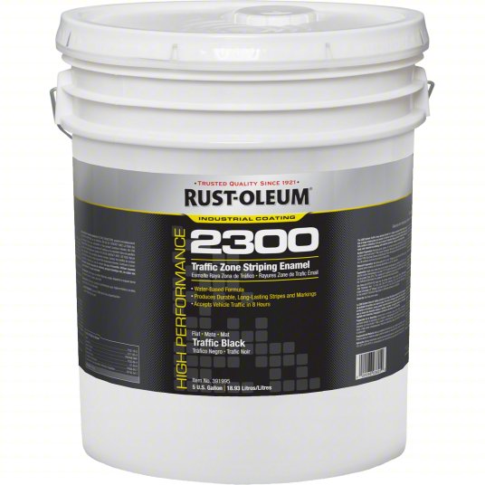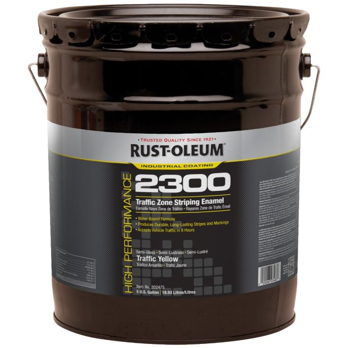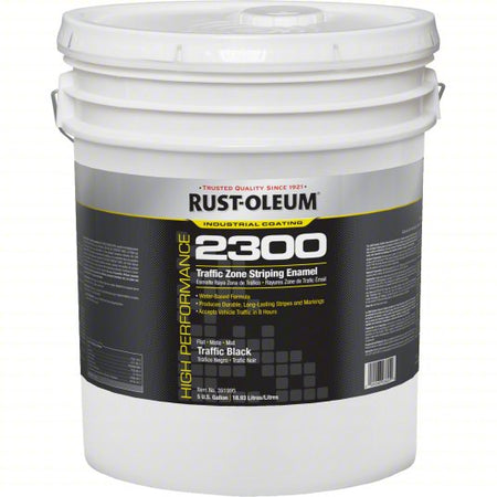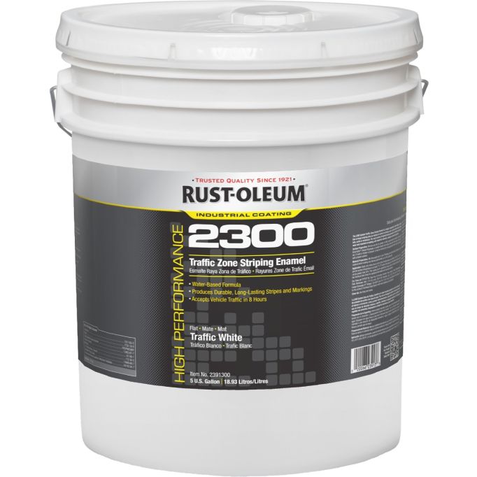 Rust-Oleum High Performance 2300 System Traffic Zone Striping Paint allows you to paint or refresh parking lots, stadiums, athletic facilities and more. Apply this weather-resistant coating to concrete, gravel or pavement for durability you can count on. VOC compliant nationwide. Ideal for large, commercial striping jobs, including parking lots, stadiums, curbs, etc. Use with bulk-spray machine, brush or roller.