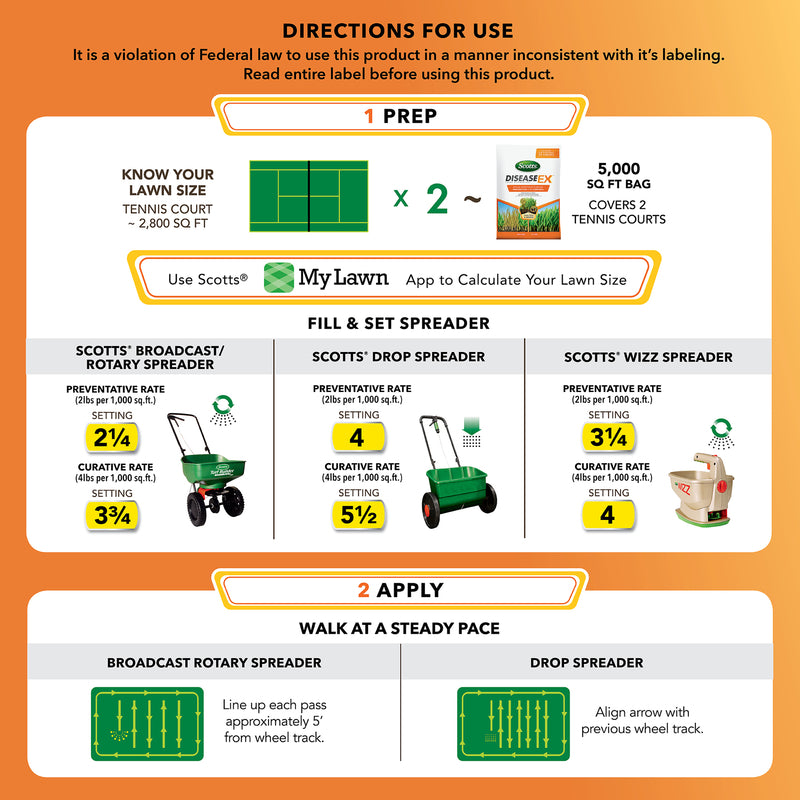 Apply this broad-spectrum lawn disease control with a Scotts ® Spreader. People and pets may re-enter the treated area after application. For best results, begin applications prior to symptoms of disease. May be applied after seeding or at seed germination. A 10-lb. bag treats up to 5,000 sq. ft.