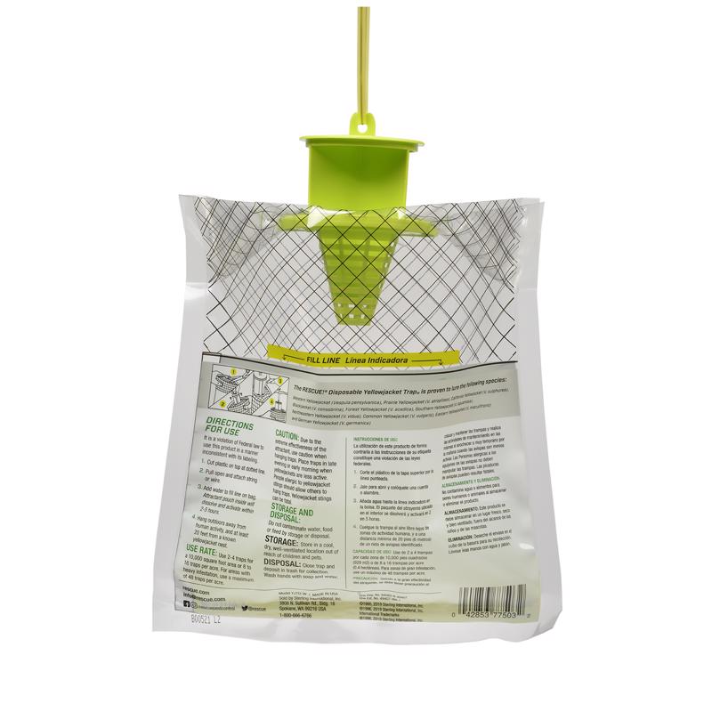 The Rescue Disposable Yellowjacket Trap is scientifically proven to effectively target and trap all major species of yellowjacket found in North America. Its powerful scent lures the pesky insects into the trap, where they ultimately meet their demise in the water. Whether you're planning a picnic or going camping, this product offers the perfect solution for controlling yellowjackets. With this convenient and effective trap, you can finally relax and enjoy the great outdoors.