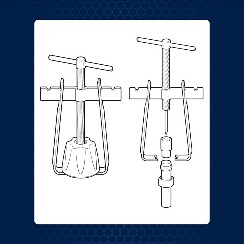 The Superior Tool Plumber's Puller Kit Removes large and small faucet handles; new and longer adjustable puller arms. New one-piece cast cross bar for increased strength and durability. Notches ensure positive & equal position of puller arms on cross bar. Compression Sleeve Puller (ferrule remover) included for quick and easy removal of 1/2" copper compression sleeves and nuts.
