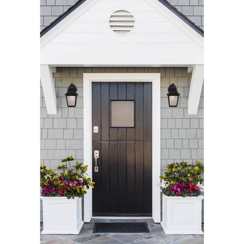 A sculpted top and back plate lends a classic touch to this energy efficient LED wall lantern. Clear seeded glass panels add to the handcrafted look of the lantern while casting warm light.