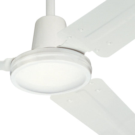 The Industrial 56-inch ceiling fan is durably constructed for industrial, commercial and residential applications. Well-recognized for its modern, mechanical appeal, the Industrial fan needs minimal assembly and includes a five-speed wall control unit and a clean white finish.