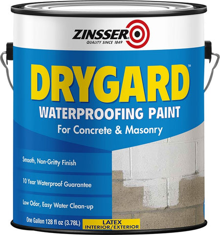 Zinsser DRYGARD Waterproofing Paint is a reliable solution to resist water pressure up to 10 PSI on interior and exterior concrete surfaces. With a smooth, tintable finish, it's perfect for basements and other damp or wet areas. Backed by a 10-year waterproof guarantee, it's a low odor, easy to clean option for concrete and masonry.